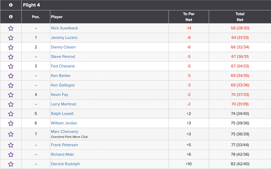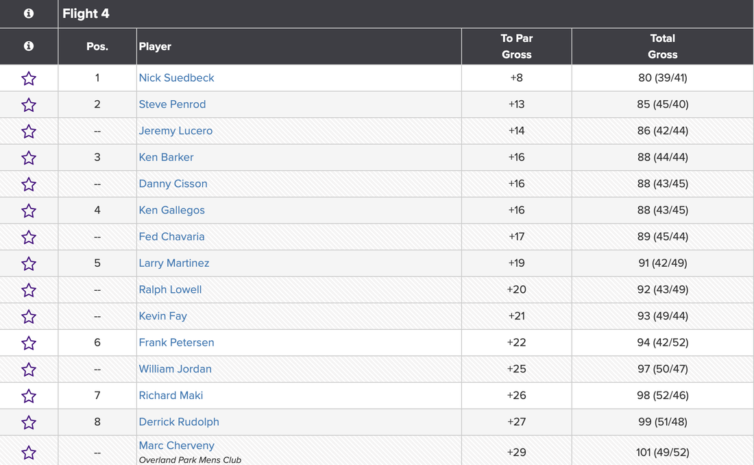 Hope everyone is ready for another great Overland Park Men’s Club season. The schedule is posted, so please save your calendars and get these dates ready for competition. Please note that we have a SUNDAY tournament this year, so please plan accordingly.